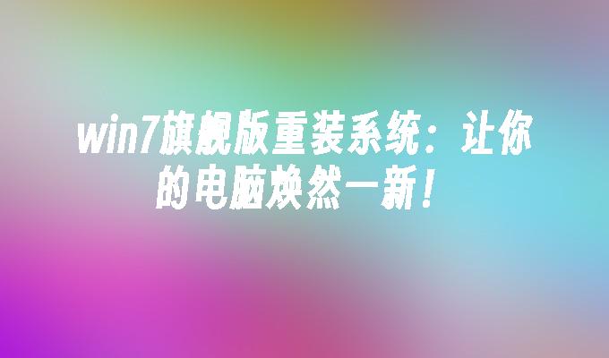 win7旗舰版重装系统:让你的电脑焕然一新!