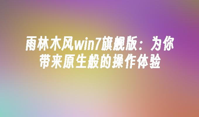 简介:雨林木风win7旗舰版:为你带来原生般的操作体验。本文将介绍雨林木风win7旗舰版的特点和优势,以及如何使用该操作系统来获得原生般的操作体验。