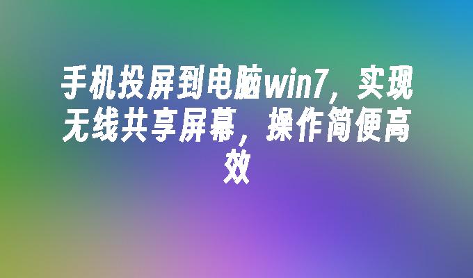 手机投屏到电脑win7,实现无线共享屏幕,操作简便高效