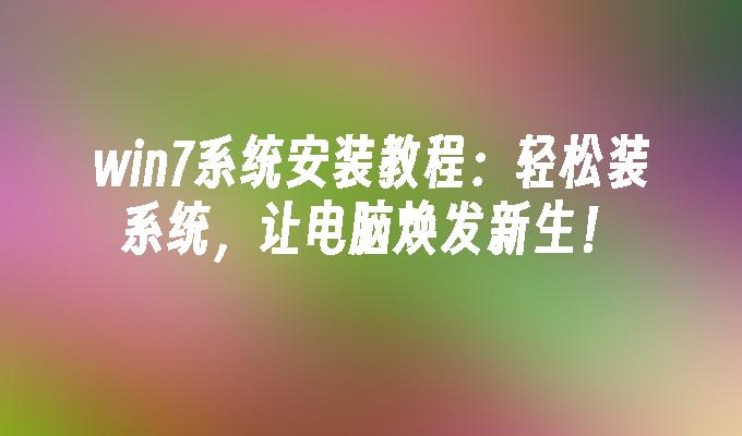 win7系统安装教程:轻松装系统,让电脑焕发新生!