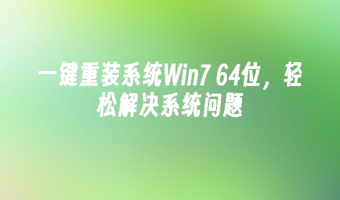 简介:在使用电脑或手机的过程中,我们经常会遇到各种系统问题,如系统崩溃、运行缓慢等。而一键重装系统Win7 64位就是一种解决这些问题的有效方法。本文将详细介绍一键重装系统Win7 64位的使用方法和价值,帮助大家轻松解决系统问题。