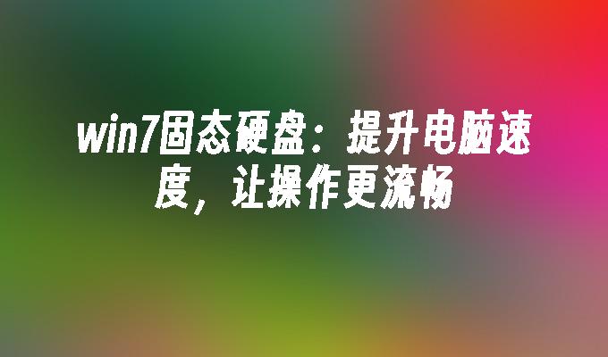 win7固态硬盘:提升电脑速度,让操作更流畅