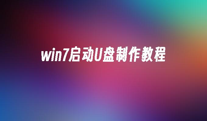 win7启动U盘制作教程