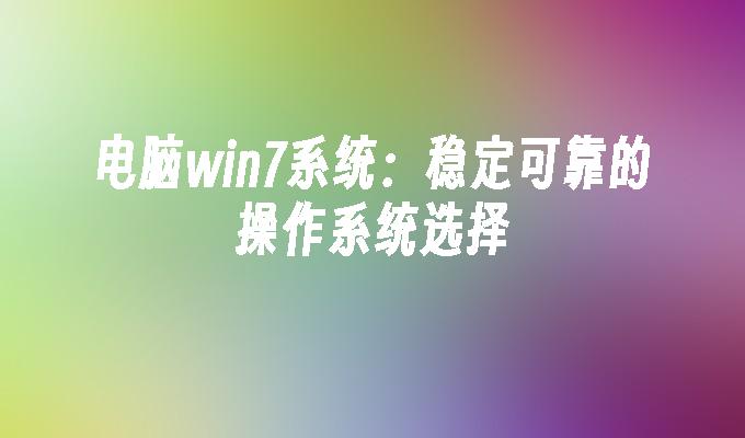 简介:电脑win7系统:稳定可靠的操作系统选择