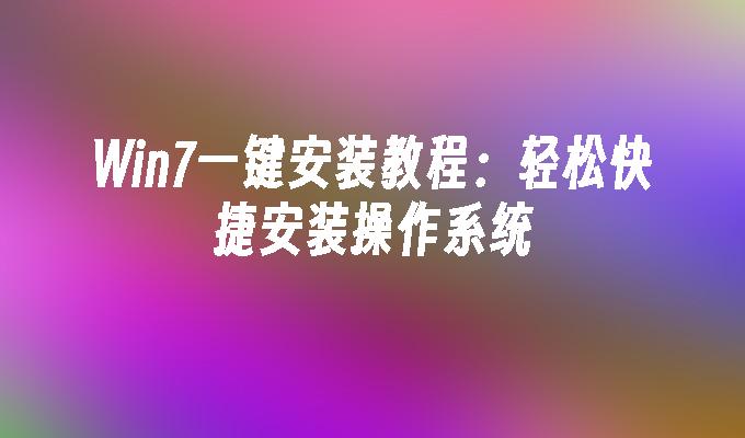 简介:Win7一键安装教程:轻松快捷安装操作系统