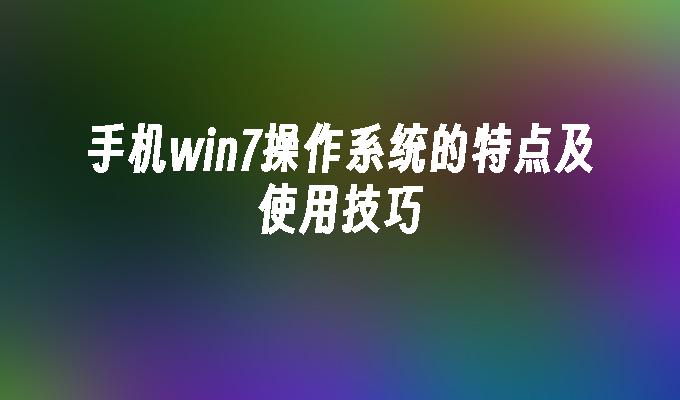 简介:手机win7操作系统是一款功能强大的操作系统,本文将介绍其特点及使用技巧,帮助读者更好地使用手机win7操作系统。