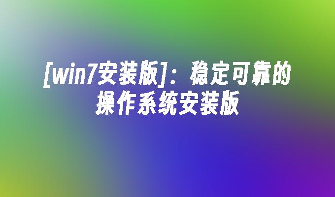 简介:[[win7安装版]:稳定可靠的操作系统安装版]是一款备受好评的操作系统安装版,具有稳定可靠的特点。本文将从多个方面对其进行详细阐述,介绍其价值和重要性。