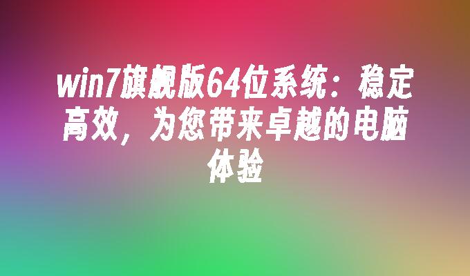简介:win7旗舰版64位系统:稳定高效,为您带来卓越的电脑体验。本文将详细阐述win7旗舰版64位系统的优势和价值,为读者提供全面的了解。