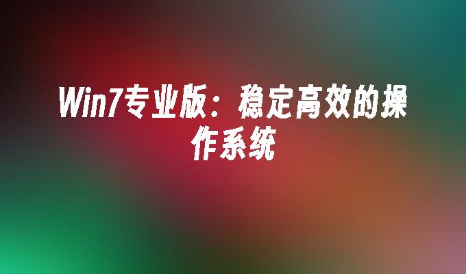 Win7专业版:稳定高效的操作系统