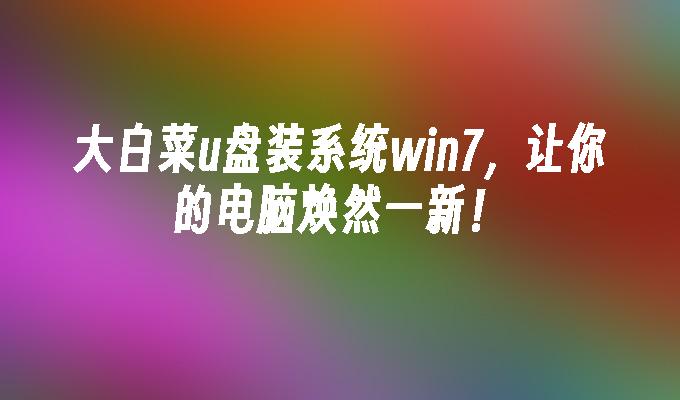 简介:大白菜U盘装系统Win7,让你的电脑焕然一新!本文将介绍使用大白菜U盘装系统Win7的方法和步骤,帮助你轻松将电脑系统升级为Win7,让电脑性能得到提升。