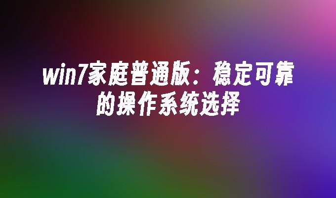 简介:Win7家庭普通版是一款稳定可靠的操作系统,本文将从工具原料、系统稳定性、软件兼容性和用户体验四个方面来阐述其优势。