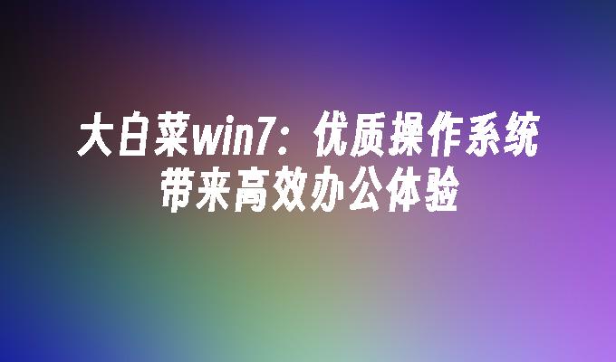 大白菜win7是一款优质的操作系统,为用户提供高效的办公体验。本文将介绍使用大白菜win7的工具原料,以及详细阐述其在办公中的优势和使用方法。