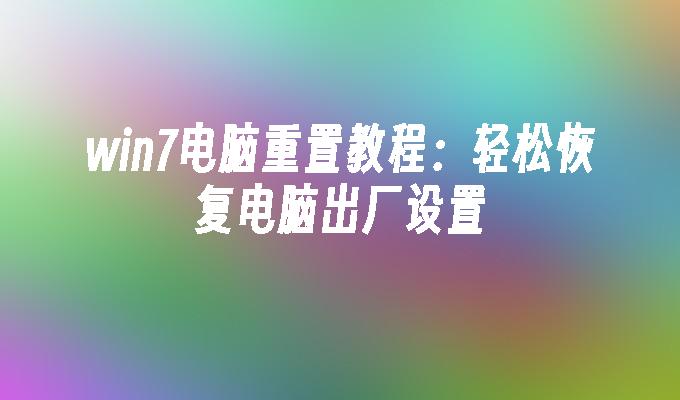 win7电脑重置教程:轻松恢复电脑出厂设置