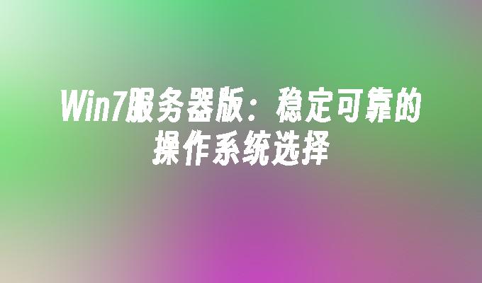 Win7服务器版:稳定可靠的操作系统选择