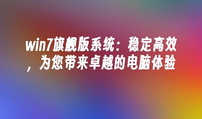 总结:Win7旗舰版系统是一款稳定高效的操作系统,为用户带来卓越的电脑体验。它具有稳定性和高效性的特点,能够提供卓越的电脑体验。在各个领域都有重要的应用,并且具有未来的研究方向。因此,选择Win7旗舰版系统将为您带来稳定高效的电脑体验。