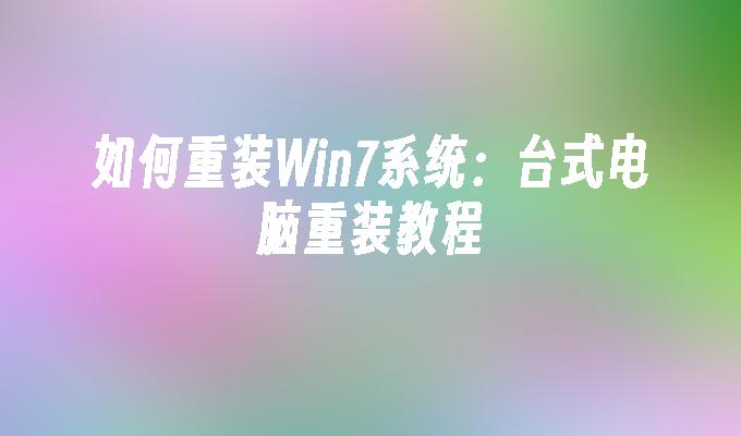 如何重装Win7系统:台式电脑重装教程