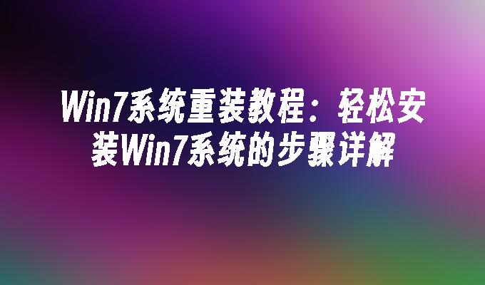 Win7系统重装教程:轻松安装Win7系统的步骤详解