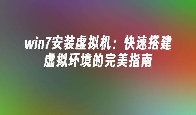 win7安装虚拟机:快速搭建虚拟环境的完美指南