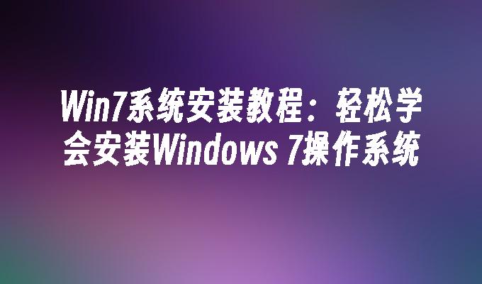 Win7系统安装教程:轻松学会安装Windows 7操作系统