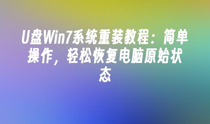 U盘Win7系统重装教程:简单操作,轻松恢复电脑原始状态