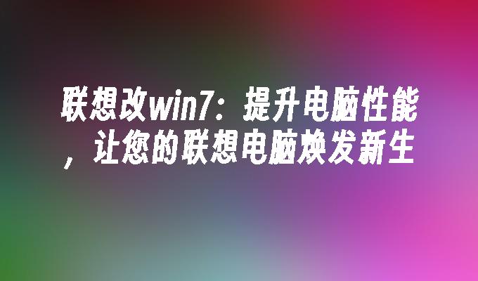 联想改win7:提升电脑性能,让您的联想电脑焕发新生