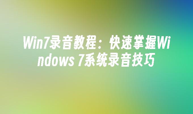 Win7录音教程:快速掌握Windows 7系统录音技巧