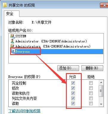 6、接下来选中刚才添加的everyone用户,然后设置共享的权限。
