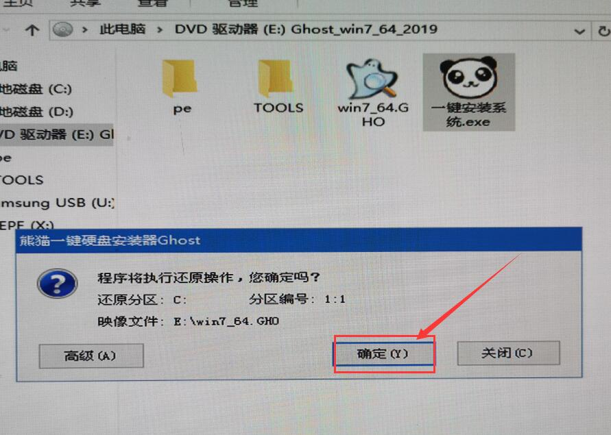 7.然后会弹出还原确认窗口,点击【确定】即可自动安装。PS:此后的所有步骤,全部为自动安装,无须操作,直至系统安装完毕后。