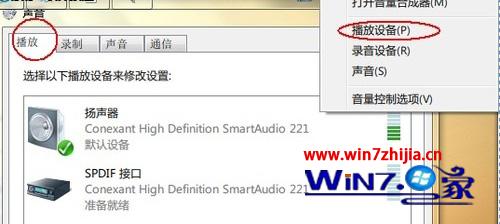 1、首先鼠标右击任务栏中的“喇叭”图标,选择“播放器设备”打开声音界面; 2、接着在弹出来的声音界面中的“播放”选项