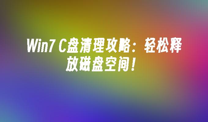 Win7清理C盘,提高电脑性能,释放存储空间,让系统更流畅。快速清理垃圾文件、临时文件、无效注册表等,优化系统运行。详细教程,一键操作,轻松解决C盘占用过多问题。快速、高效、安全,让您的Win7系统焕发新生!