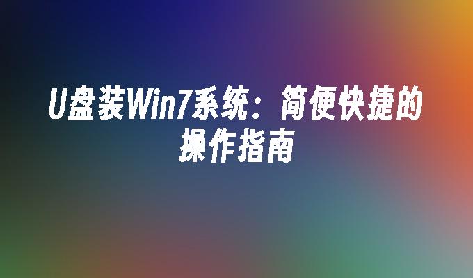 了解如何使用U盘装Win7系统,步骤简单易行。本文提供详细指导,帮助您快速完成安装。无需CD或DVD,只需一个U盘即可。立即阅读,轻松安装Win7系统。