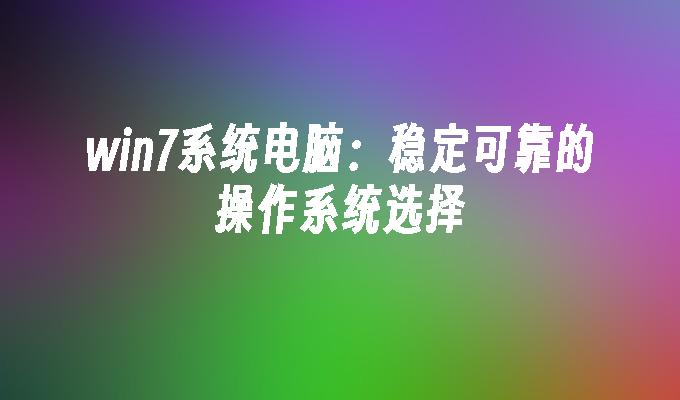 电脑win7系统是一款稳定可靠的操作系统,具有良好的用户体验和广泛的兼容性。了解win7系统的安装、升级和常见问题解决方法,尽在智能百科。