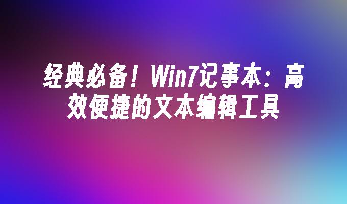 Win7记事本是一款功能强大的文本编辑工具,适用于Windows7操作系统。它简洁易用,支持多种文本格式,能够满足用户的各种编辑需求。无论是写作、编程还是日常记录,Win7记事本都能提供高效的编辑体验。快来下载体验吧!