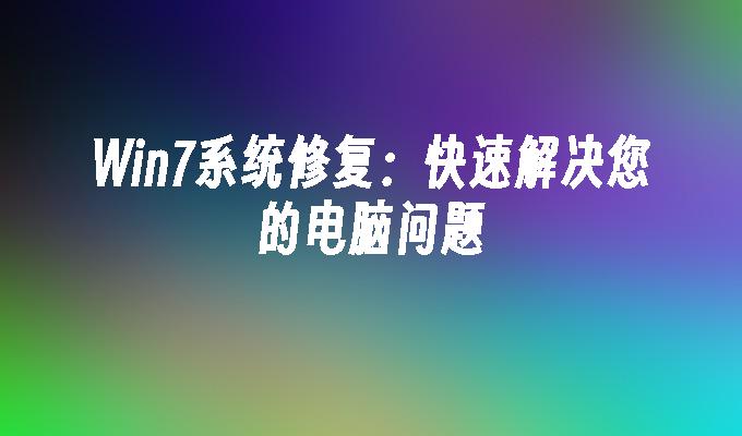Win7系统修复:快速解决您的电脑问题