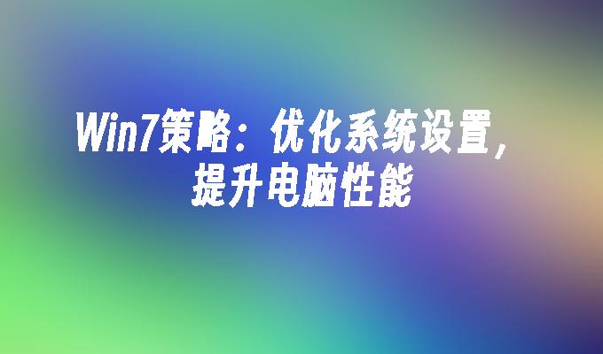 Win7策略:了解如何优化您的Win7系统,提高性能和安全性。从定期更新到优化注册表,我们提供简单易懂的指南,帮助您充分利用Win7的功能。立即了解Win7策略,让您的计算机运行更快、更稳定!
