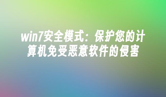 win7安全模式:保护您的计算机免受恶意软件的侵害