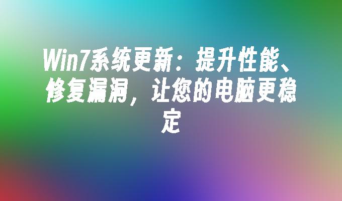 Win7系统更新:了解最新的Win7系统更新内容,包括安全补丁、功能改进和性能优化。提供详细的更新指南和步骤,确保您的电脑始终保持最新状态。立即获取Win7系统更新,提升系统稳定性和安全性。