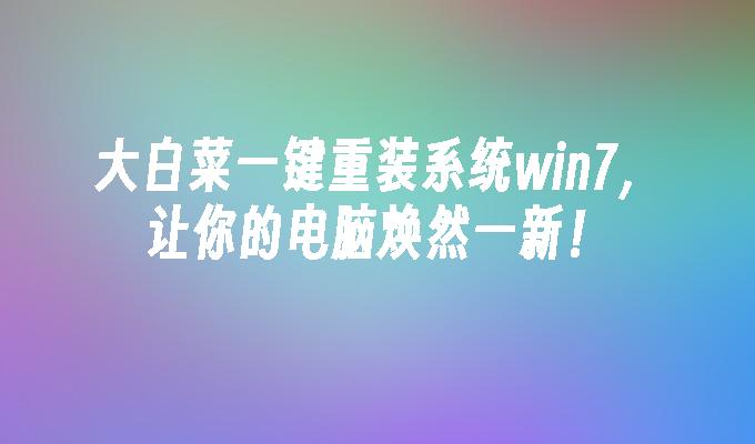 大白菜一键重装系统win7,让您的电脑焕然一新!快速、简便的操作,让您省时省力。无需繁琐的步骤,只需点击几下,系统即可完美重装。享受流畅的电脑体验,尽在大白菜一键重装系统win7!