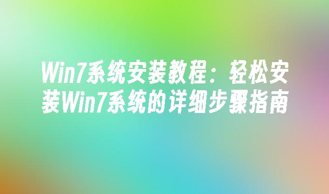 想了解如何安装Win7系统?本文为您提供详细步骤和注意事项,助您轻松完成安装。从准备安装介质到设置系统配置,一切都将一目了然。立即阅读,快速掌握Win7系统安装技巧!