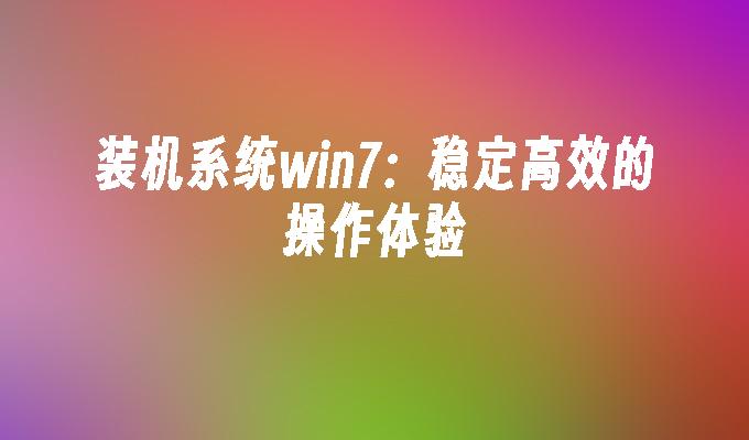 装机系统win7是一款稳定可靠的操作系统,适用于各类电脑配置。它拥有简洁的界面和强大的功能,能够满足用户的各种需求。无论是办公、娱乐还是游戏,win7都能提供流畅的体验。快来了解更多关于装机系统win7的信息吧!
