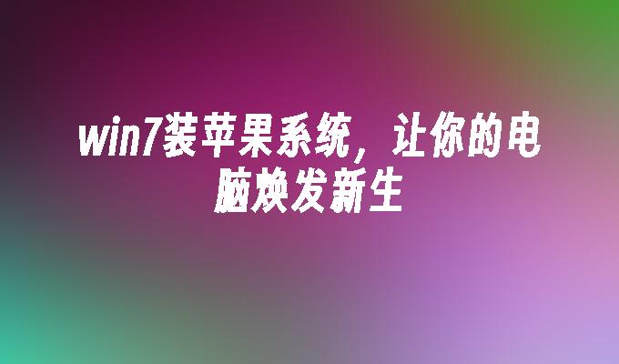 Win7装苹果系统,教你一步到位。详细步骤、图文指导,让你轻松实现跨平台操作。快速安装,稳定运行,让你畅享苹果系统的优势。点击了解更多!