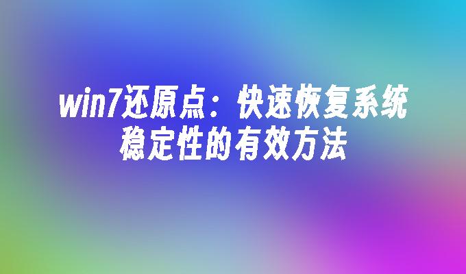 Win7还原点是Windows7操作系统中的一个重要功能,它可以帮助用户在系统出现问题时快速恢复到之前的稳定状态。了解Win7还原点的使用方法和注意事项,可以有效提高系统的稳定性和安全性。快来了解更多关于Win7还原点的知识,让您的电脑运行更加顺畅!