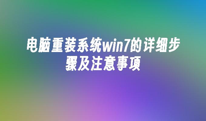 电脑重装系统win7的详细步骤及注意事项