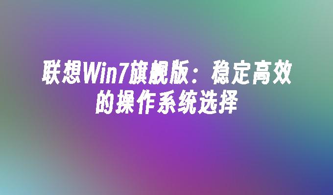联想win7旗舰版是一款功能强大的操作系统,具备稳定性和安全性。它提供了流畅的用户体验和多样化的应用程序。无论是办公还是娱乐,联想win7旗舰版都能满足您的需求。快来体验这款卓越的操作系统,让您的电脑更加高效和安全!