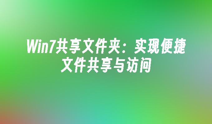 Win7共享文件夹:了解如何在Windows7中设置和管理共享文件夹。通过简单的步骤,您可以轻松共享文件和文件夹,实现更高效的团队合作和文件访问。