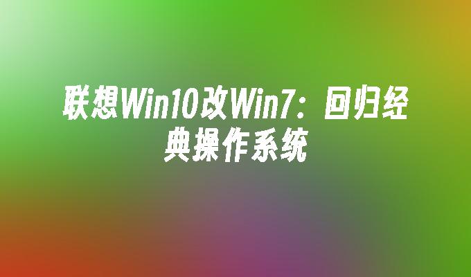 想要将联想Win10改为Win7?了解如何在几个简单步骤中实现操作系统的降级。遵循我们的指南,快速、轻松地将您的联想设备从Win10回滚到Win7,以满足您的个人需求。