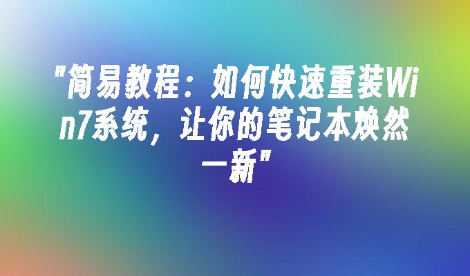 简易教程:如何快速重装Win7系统,让你的笔记本焕然一新