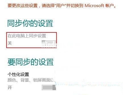 然后单击右边窗口中的“在此电脑上同步设置”单击“关闭”按钮即可,(注意):同步功能本地用户无法使用。