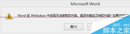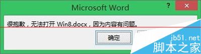 第三步:将img0.jpg进行重命名,Win8.docx,双击打开进行浏览。如果遇到下图的故障,继续看第四步。