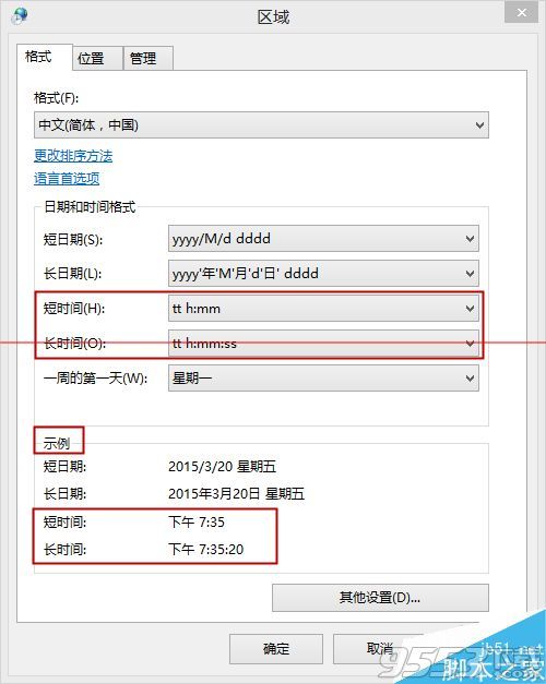 6、12小时制的就把,“短时间”栏的改为“tt h:mm ”,“长时间”栏的改为“tt h:mm:ss”